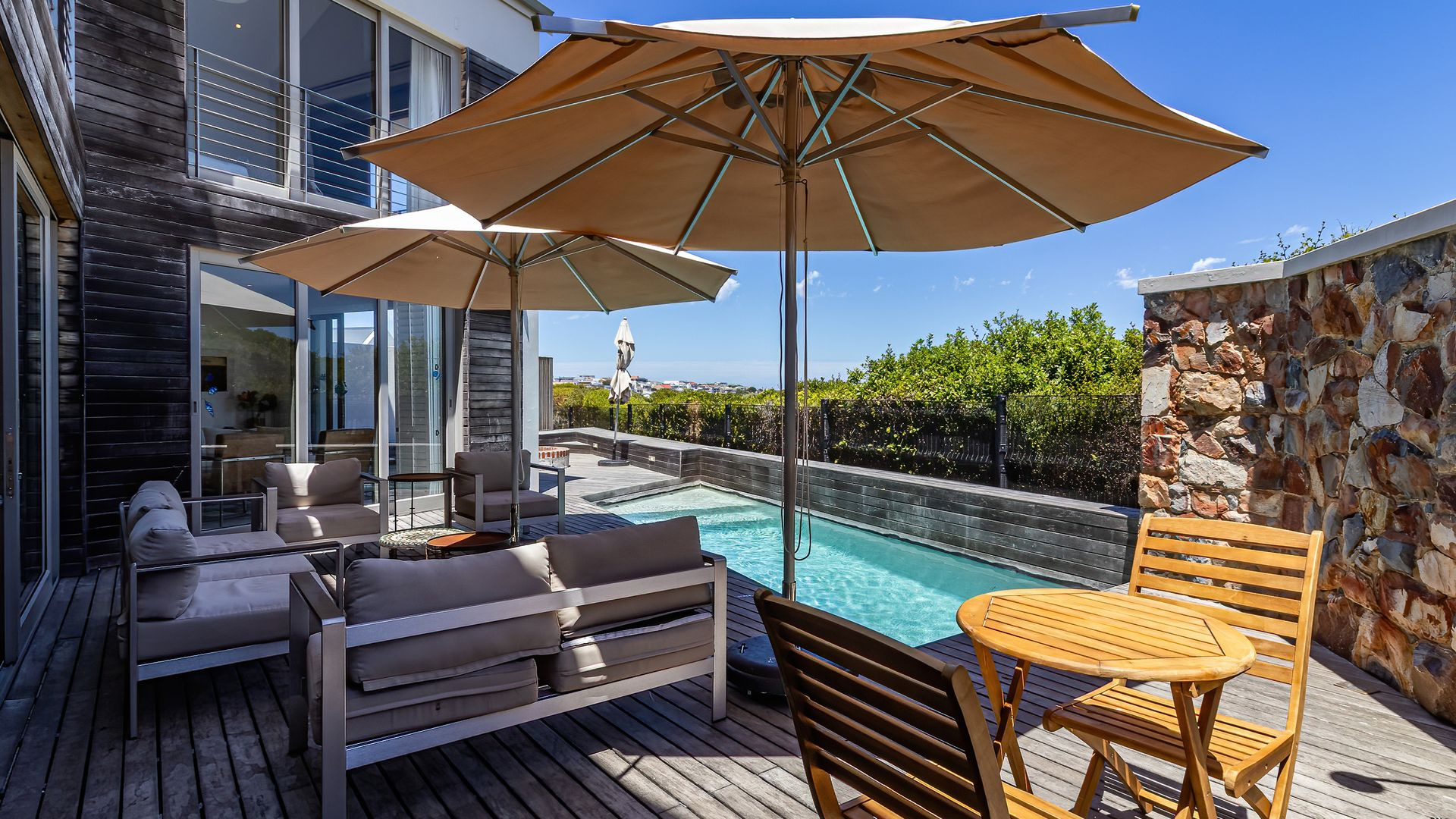 Bonus features include heated towel rails and wall-mounted heaters in two bedrooms, security shutters on both levels, solar panels, a double garage and a guest loo on the ground floor. Clear-view fencing surrounds the property, which is also just a short walk from Stanford’s Cove swimming beach. But wait, there’s more: the adjacent 332 m² vacant stand, fully fenced and with its own title deed, is included in the price. Now all that remains is to get in touch and arrange your private tour.