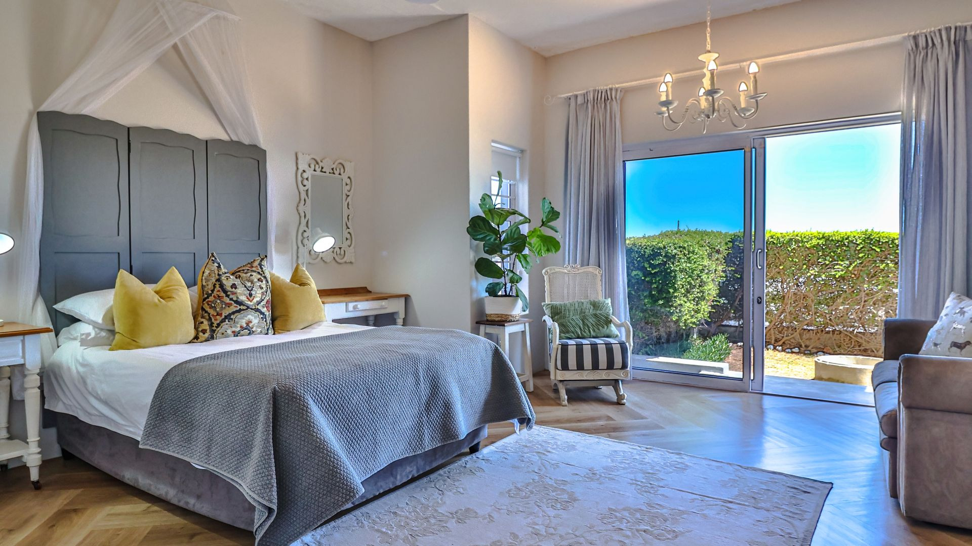 Built across two levels, the interior blends chic and sleek modern styling with warmth, wood, and natural elements that create an aesthetic both luxurious and restorative. Both levels boast sea views, with the ground floor enjoying a private garden, boma, and sheltered patio. Indoors, the ground level showcases two beautifully appointed bedrooms, a shared bathroom, kitchenette, en-suite staff accommodation, and a separate home office/study.