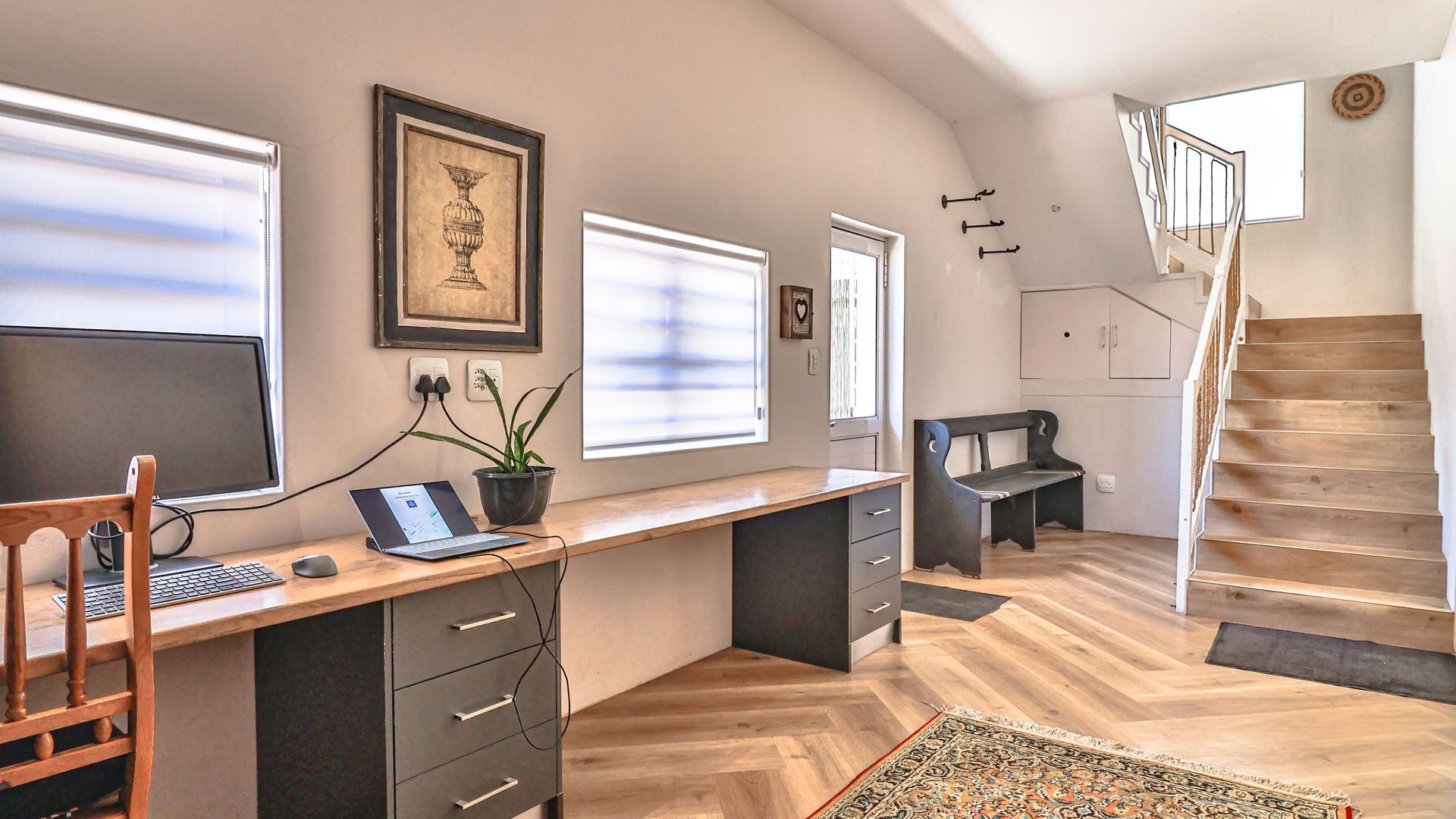 Not only energy-efficient and eco-friendly, this property is beautiful, well-positioned, and income-generating, as the lower level is also used as a holiday property. A well-established, laid-back holiday destination, De Kelders is home to Stanfords Cove (for safe swimming and picnicking), whale spotting, fynbos, an unforgettably lovely natural environment, and so much more. Get in touch and let’s arrange a tour of this dream-come-true property