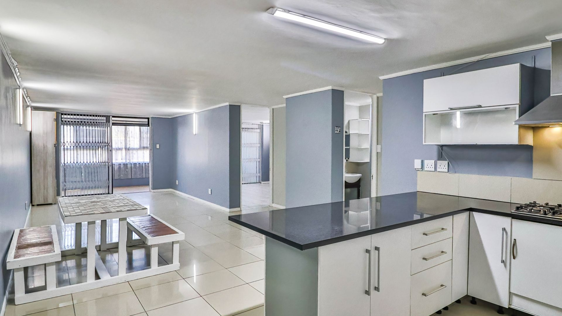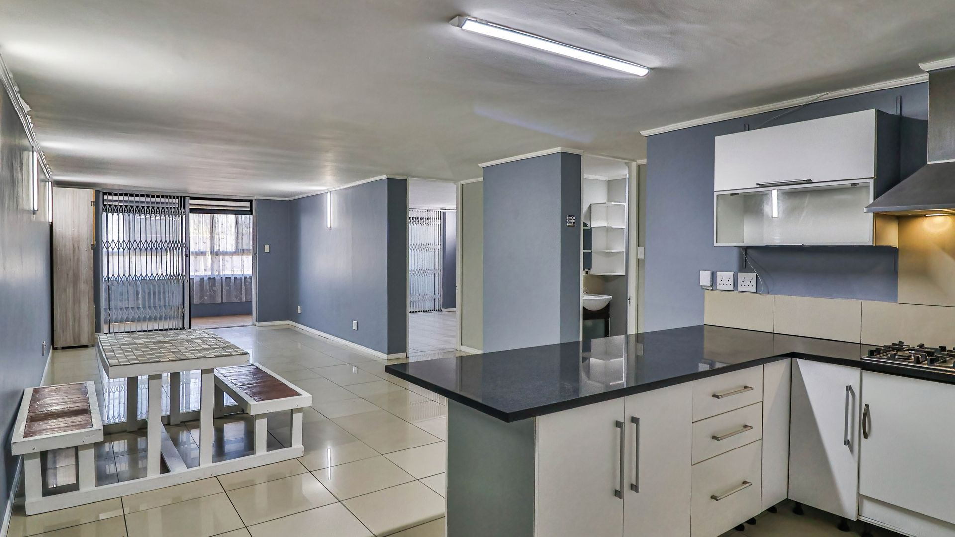 This north-facing ground-floor unit is tiled throughout and includes two bedrooms, one of which is en suite, a second bathroom, and a classic open-plan lounge and kitchen with granite counter-tops, a gas hob, double sink, and ample space for all appliances. For the creative homeowner, the enclosed balcony is light-filled and spacious and would make a great studio or crafting space, or could even accommodate extra visitors over the holiday period. Already equipped with trelli-doors and blinds, the dove-coloured walls and white finishes form a soothingly neutral backdrop in an apartment that combines convenience with comfort, and style with safety. Whether as a permanent address or a holiday home, this unit is a great choice. Get in touch to arrange a private viewing.
