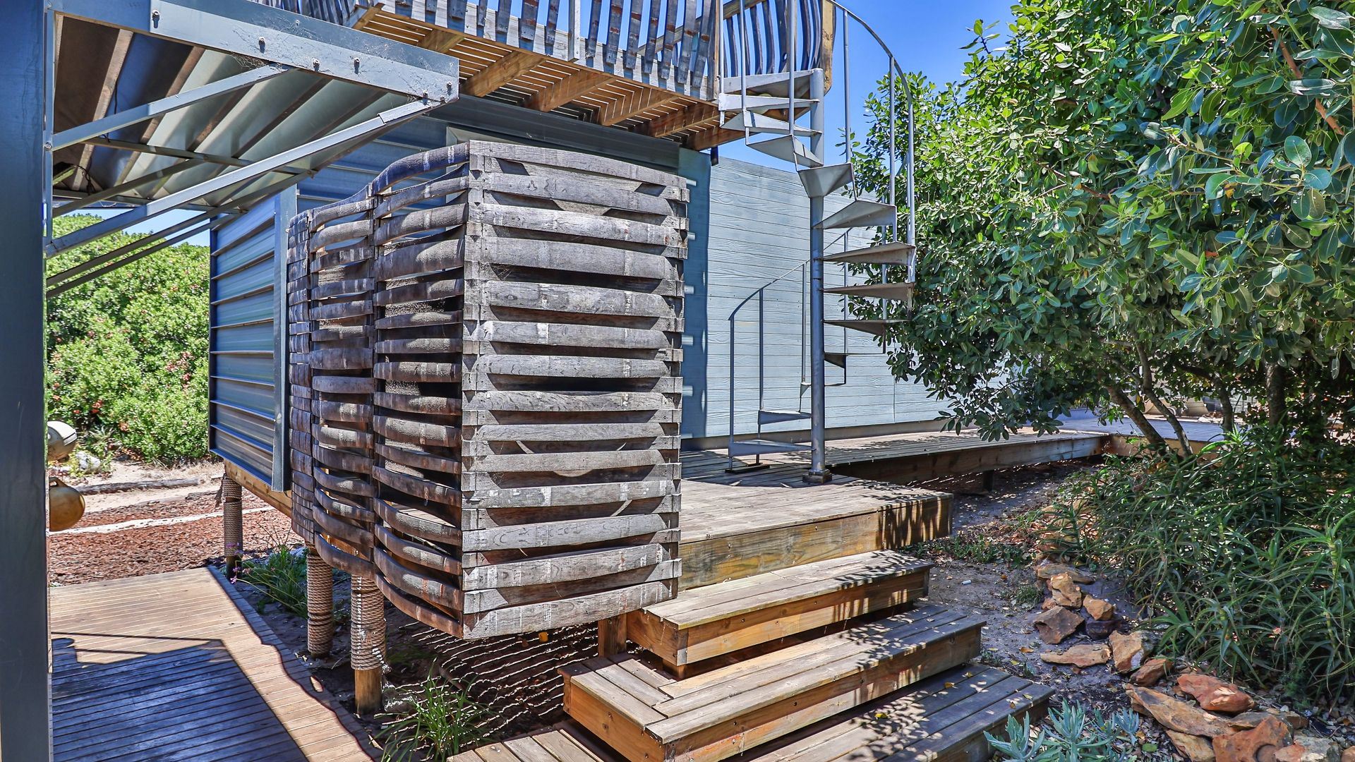 A home for the free spirit. Loaded with character and easy boho charm, this Kleinbaai property presents two eco-friendly modular homes on one stand, each with its own bedroom, bathroom, kitchen and living area. One boasts a viewing deck, from where you can take in both sea and mountain views, while both homes include a private, sheltered patio, one with a built-in braai. Within walking distance of the ocean and set in a landscaped, zen-inspired space, complete with Milkwood trees, winding paths, boma and an outdoor bathtub for cooling off in summer, if it’s a casual, well positioned and well priced home you’re looking for, get in touch today to arrange a viewing.