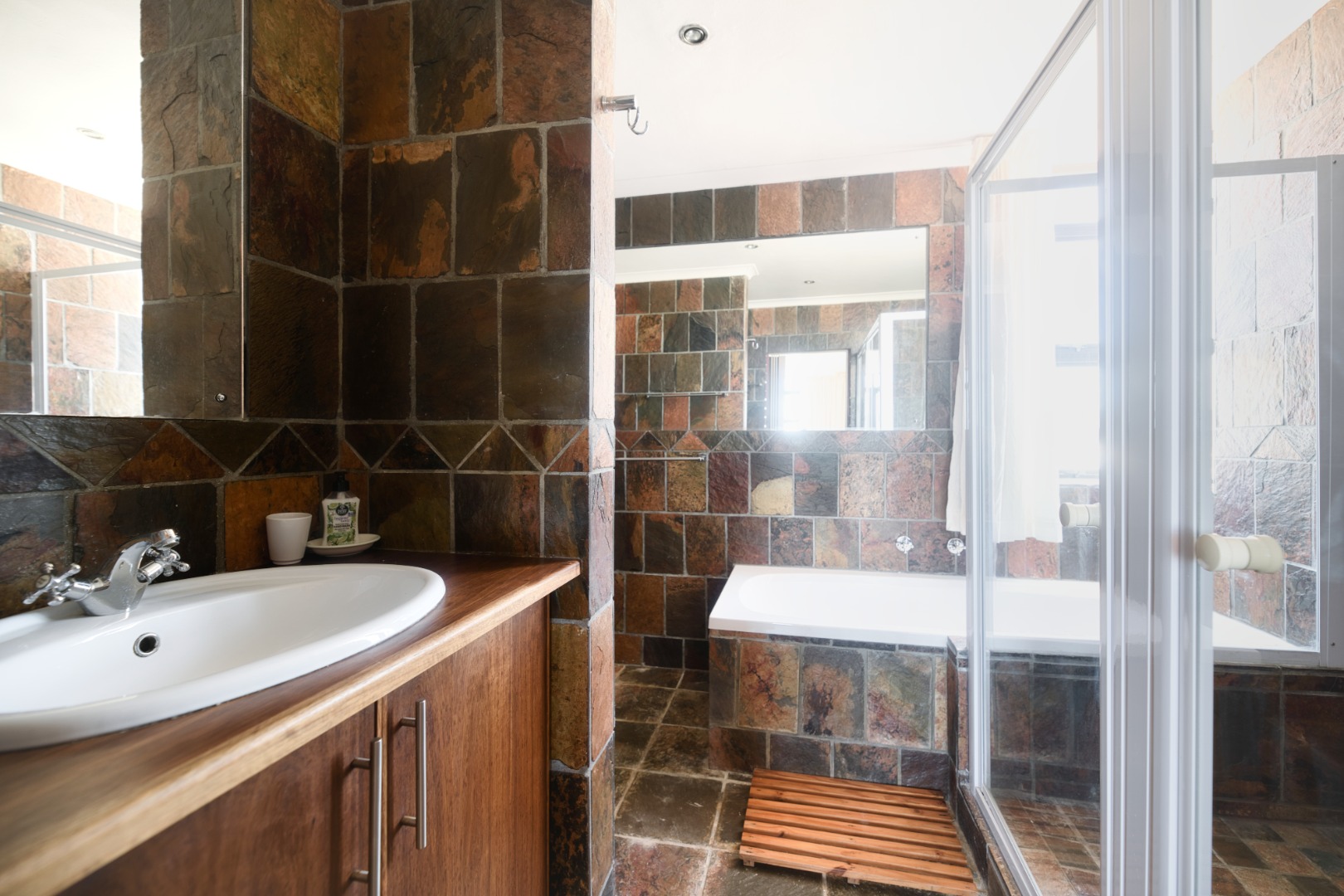 Spacious 4-bedroom home offering exceptional entertainment and flexibility. The top floor features an open-plan lounge, dining area and kitchen with built-in braai. Stacker doors open to a large deck with ocean views, while a rooftop deck provides 360° views of the ocean, mountains and surrounds. Main bedroom with full en-suite completes this level.