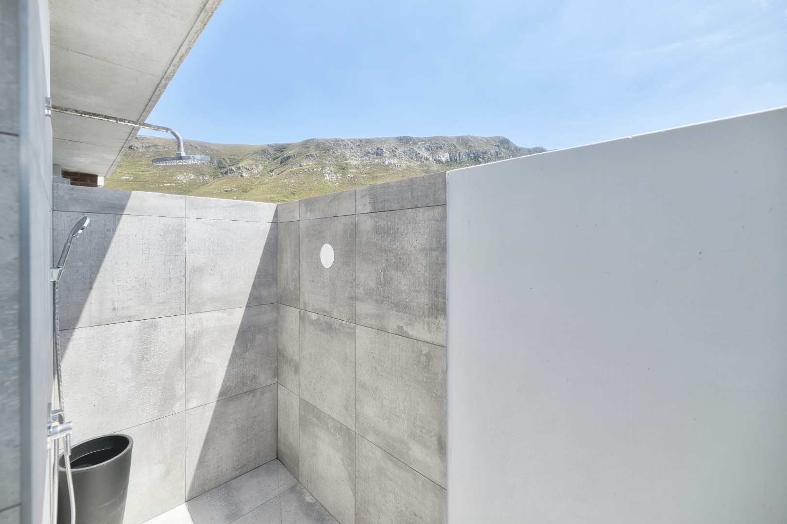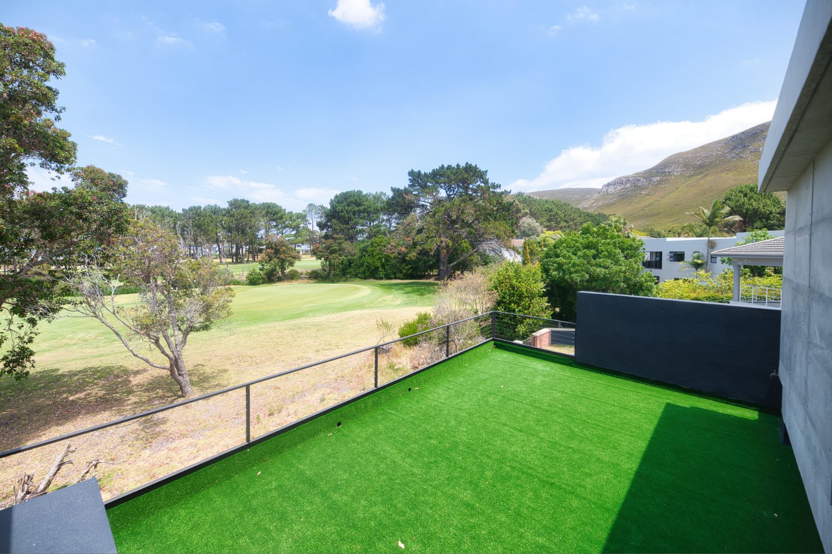 Beyond the interior, a magnificent outdoor vista awaits. On the northern side, the generous patio, complete with a built-in braai, overlooks a sparkling pool, garden, all set against a backdrop of breathtaking scenic mountain views. To the south is the view of the golf course and in particular, the 24th hole which happens to be a par 3. If you are a golfer, access is available to the course within Hermanus Heights.