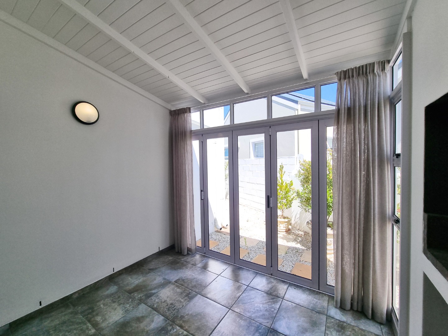 Designed for both comfort and connection, the home features two generous en-suite bedrooms and a dedicated braai room with stacker doors opening to a private, tranquil garden — perfect for slow mornings, relaxed weekends and memorable evenings with friends. A wood-burning fireplace adds warmth and ambience during winter, while the single garage offers direct access with additional storage and laundry space. Pet-friendly and ideal as a lock-up-and-go retreat, residents also enjoy landscaped communal areas and a swimming pool, all set within one of Sandbaai’s most sought-after lifestyle estates.