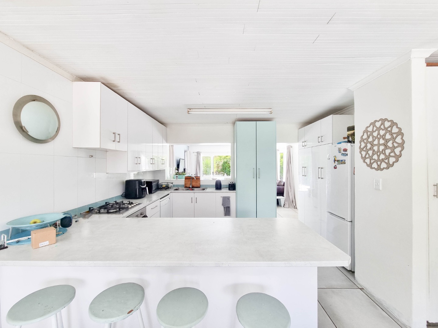 Spacious living areas flow from a large dining room into a welcoming lounge and out to an inviting outdoor entertainment area overlooking the pool - a layout made for relaxed coastal living, family gatherings and long summer braais. Four well-proportioned bedrooms are served by two full bathrooms, providing a strong foundation for a thoughtful renovation that enhances both comfort and value.