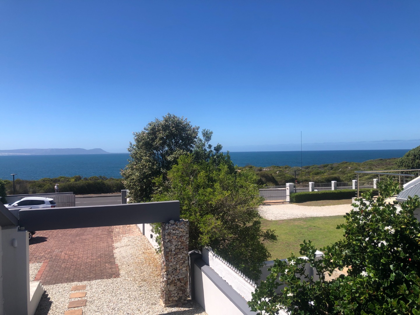 Discover an exceptional Seaside residence in Westcliff, Hermanus, boasting breathtaking panoramic sea views and contemporary architectural design. This multi-level home immediately impresses with its sleek grey and white exterior, complemented by stylish stone accents and unique gabion pillars. Its elevated position ensures unobstructed vistas of the ocean and distant mountains, creating a serene and picturesque setting. An inviting entrance hall sets the tone for the sophisticated living experience within this magnificent waterfront property. Direct access to the Cliff Path, which is a stones throw from the front gate. Fick's Pool is a brisk 3 minute walk from the house and 7 minutes to Gearings Point and the centre of town.