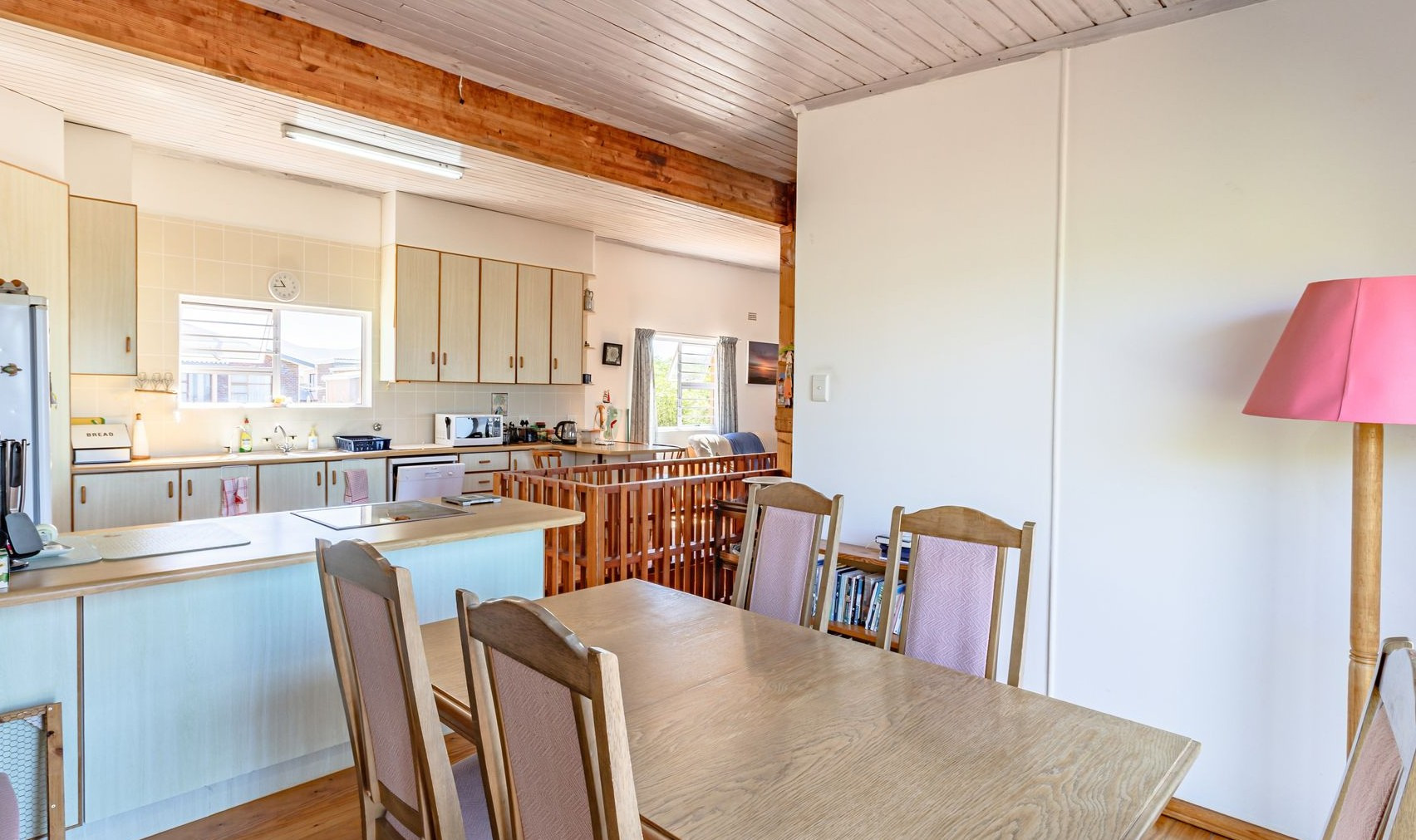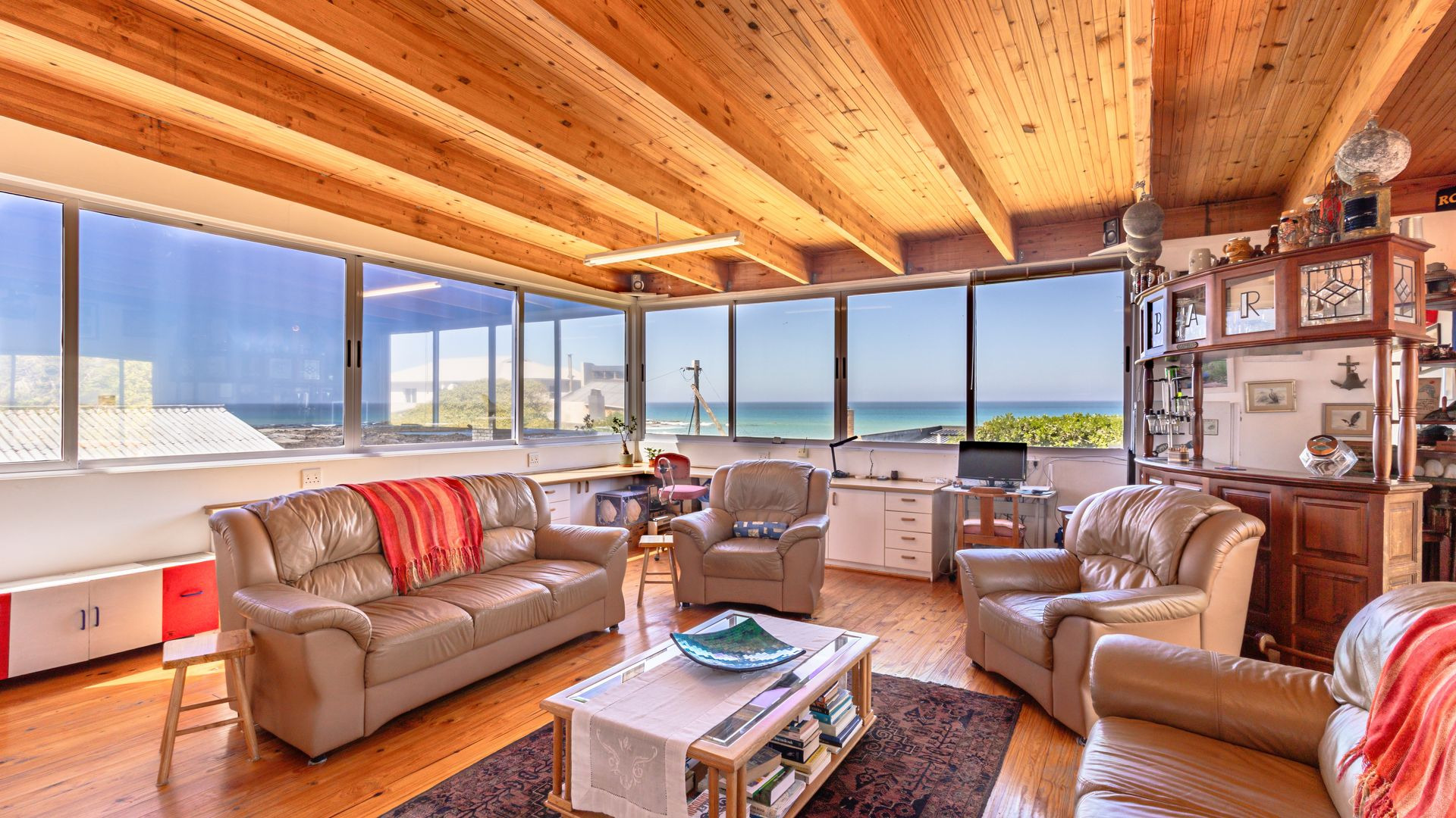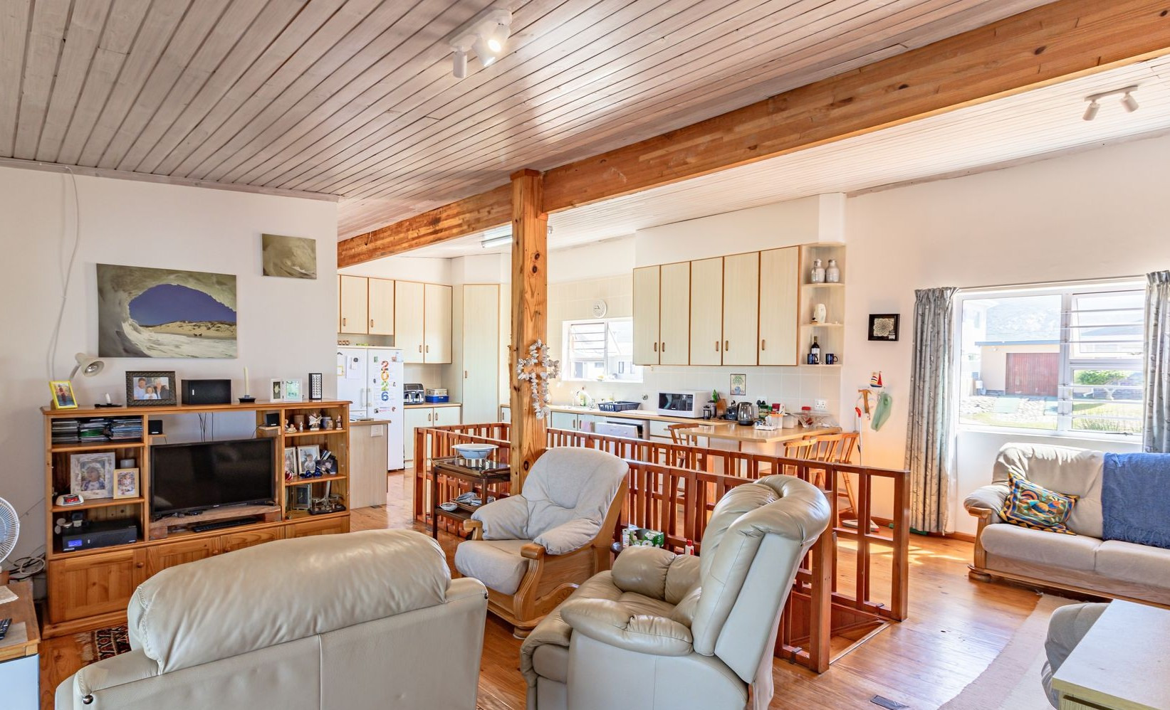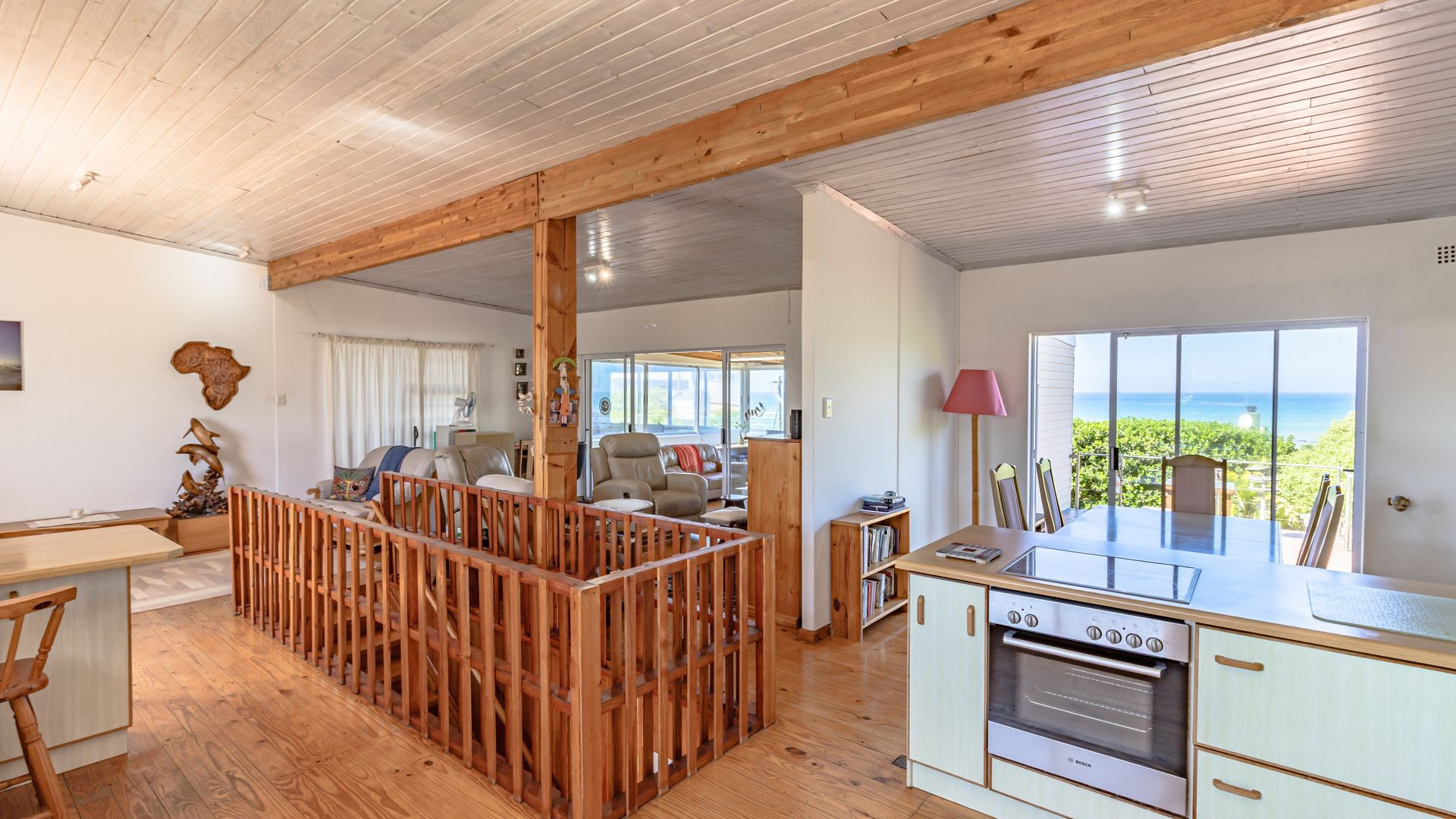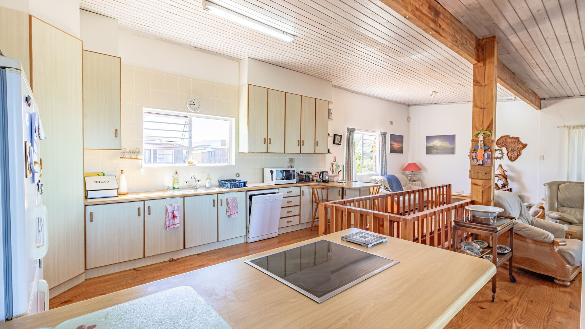 Set within a nicely sized, prettily landscaped garden, the ground floor invites you indoors for a closer look at the three comfortable bedrooms, of which two have private en-suite bathrooms, plus an additional full family bathroom, and a dedicated laundry room opening into the yard, adding a touch of holiday convenience to the layout. Upstairs lies the heart of the home: a series of interconnecting living and entertaining spaces, gorgeous wooden floors and an open balcony, while the built-in bar and braai provide a focal point for social gatherings. The open-plan kitchen (which includes a reverse osmosis water system) will keep the culinary creator happy, but a clear highlight, for me anyway, is the built-in study/office area upstairs overlooking the ocean. Good luck getting any work done with that distraction! Close to the shore, pet and child-friendly, this property is designed with family living in mind. So, should you be in the market to reinvent your lifestyle, get in touch and let me show you Franskraal and your new home.