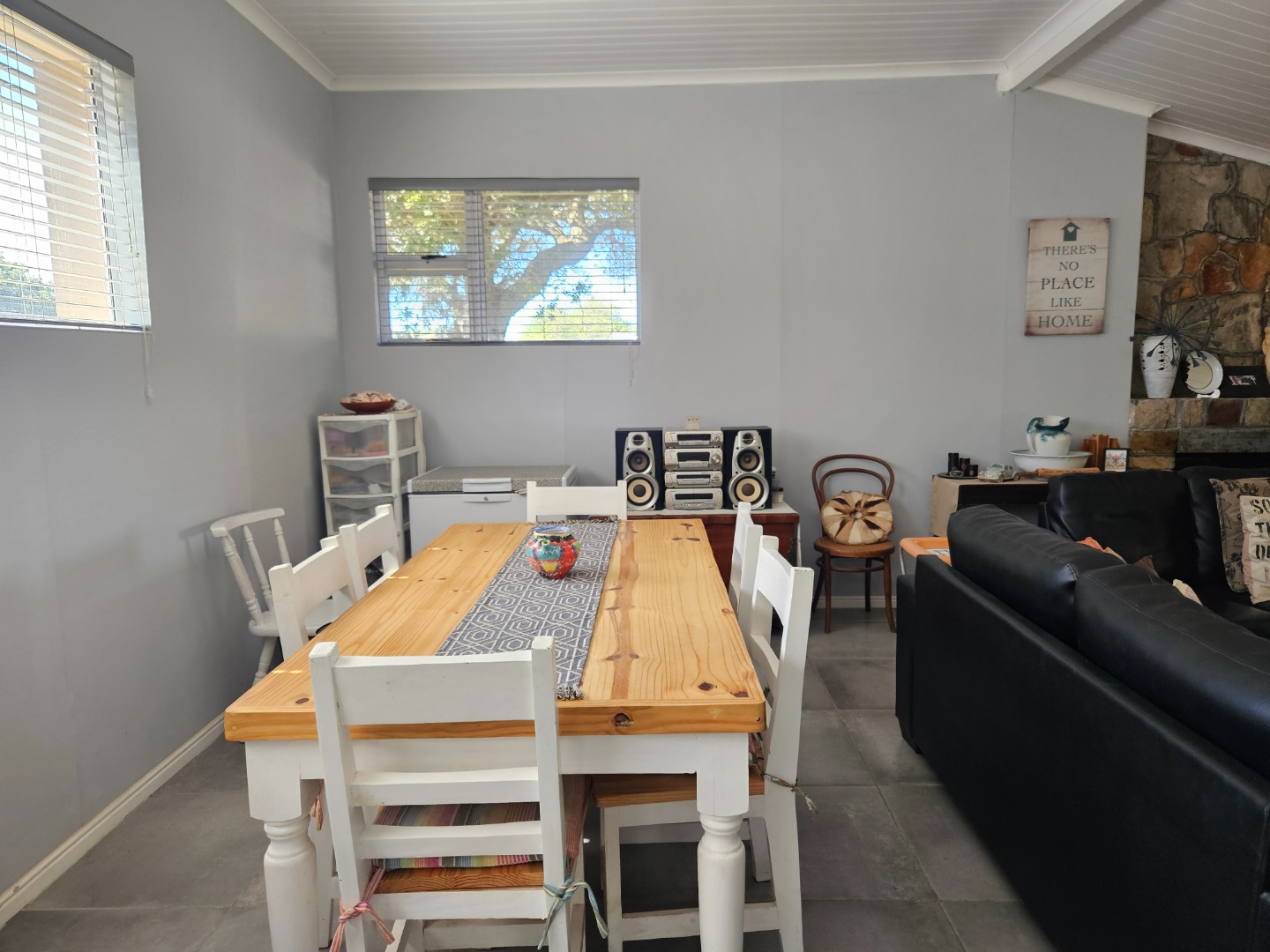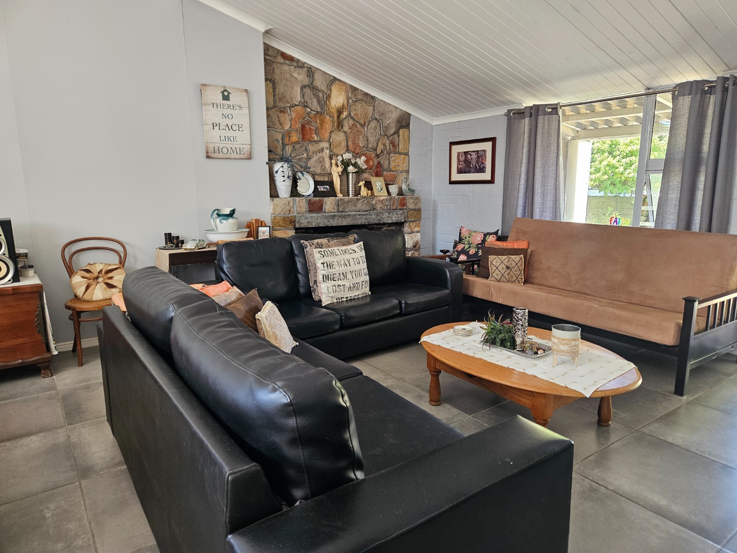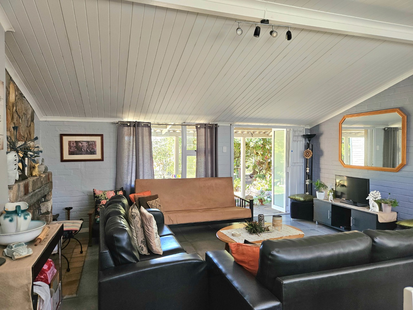 Step out onto the covered stoep with a built-in braai, the perfect spot to enjoy outdoor meals while listening to the abundant birdlife in the surrounding trees.