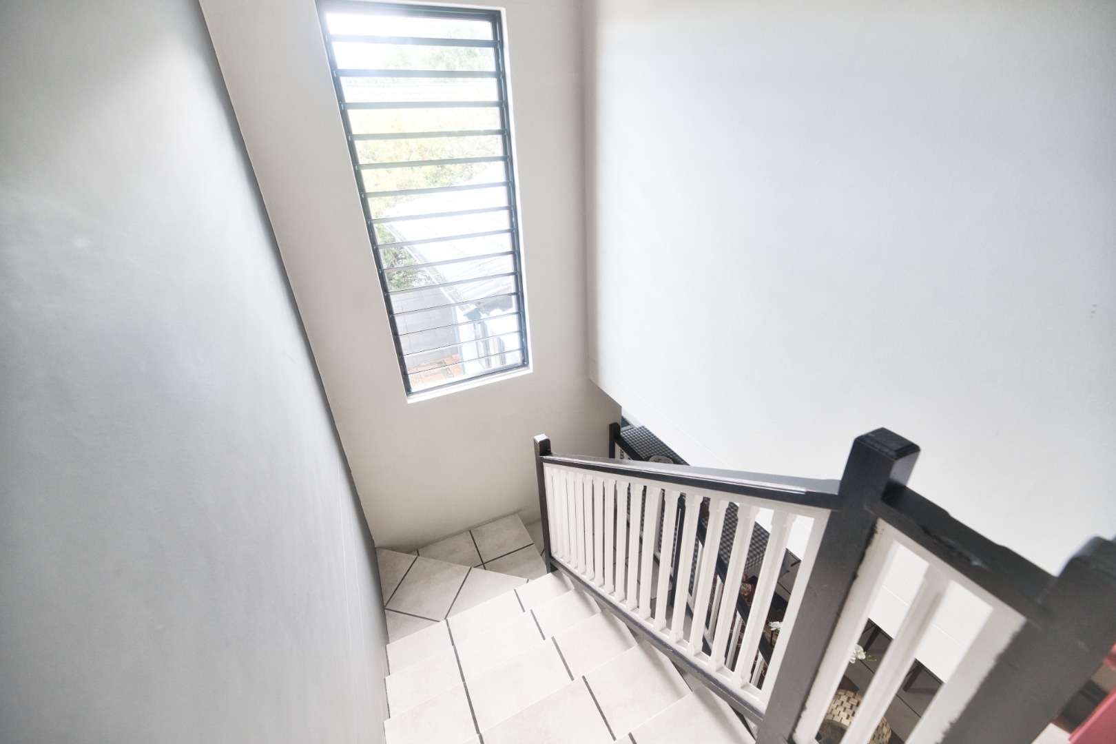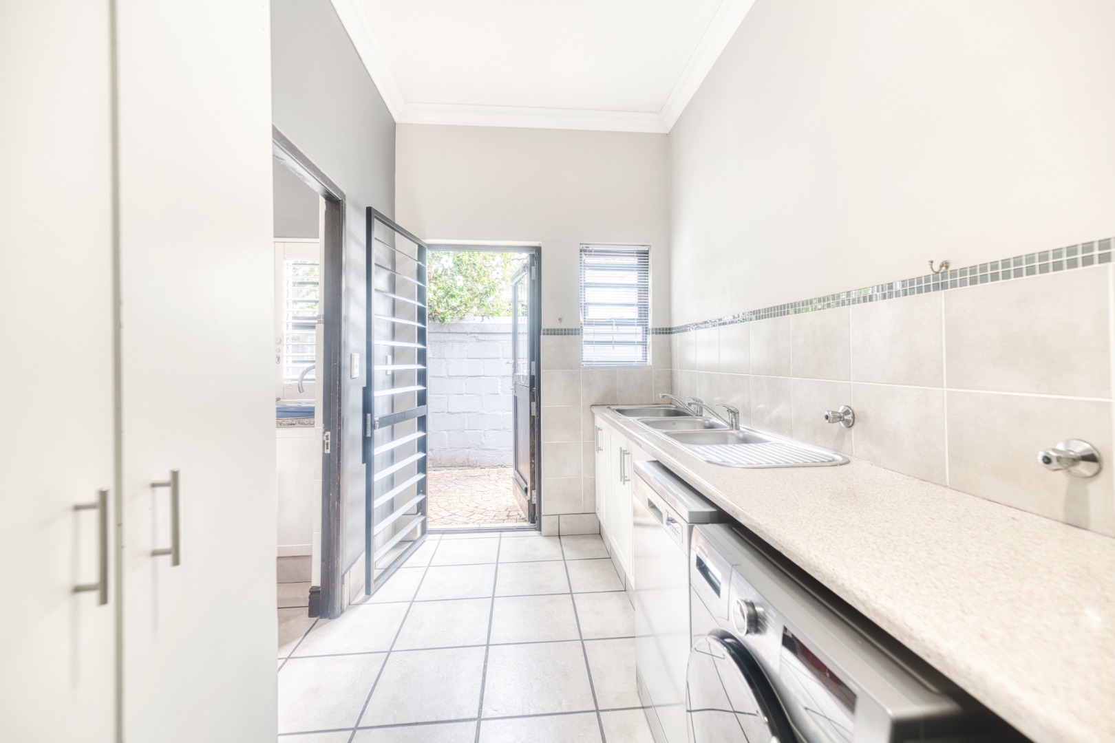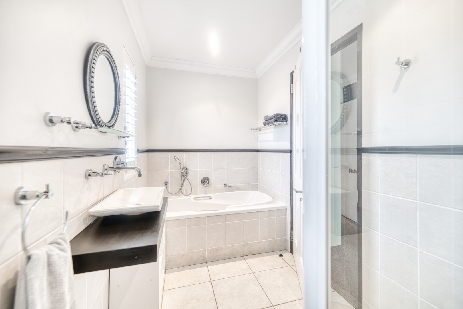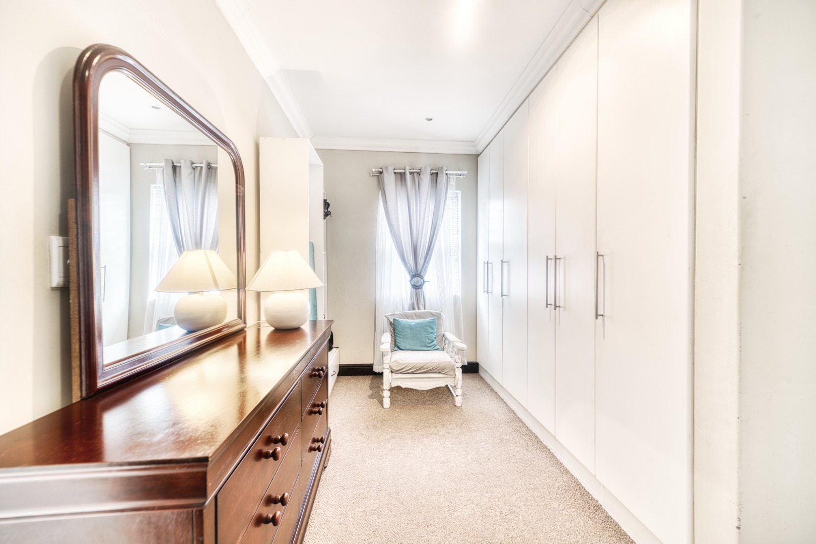 Outdoor living is well-catered for with a pool, a private garden, a patio, and a balcony offering scenic views. The property provides secure parking with a double garage and three additional parking spaces. Security features include an alarm system, access gate, intercom, burglar bars, and a totally walled perimeter, ensuring peace of mind. The inclusion of solar panels highlights a commitment to sustainable living.