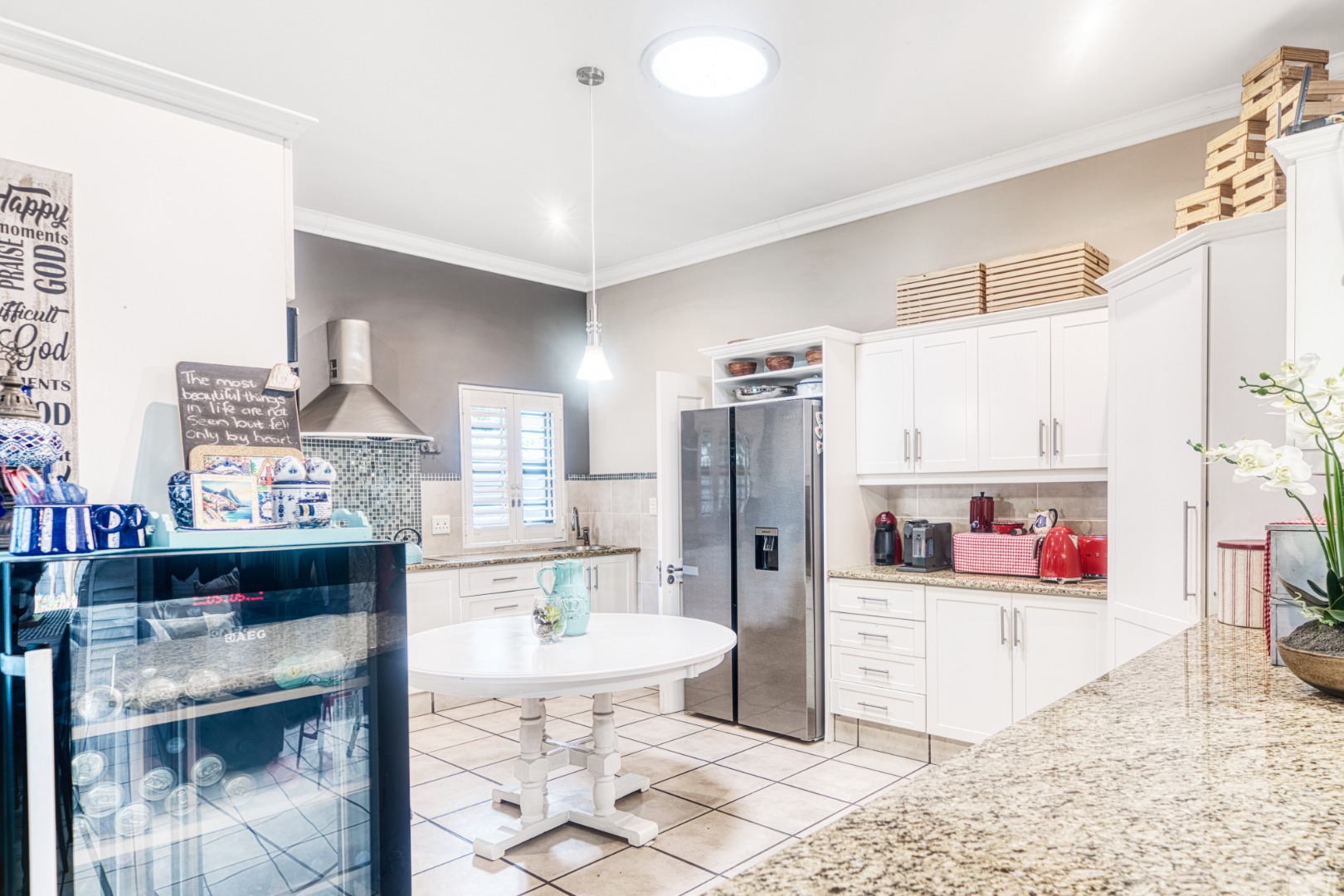 Arrange a viewing to view this inviting four-bedroom, four-and-a-half-bathroom residence nestled deep in the heart of Hermanus Heights. Designed for comfortable living, this home features an open-plan layout with sliding doors that enhance the flow between different living spaces. The interior boasts two spacious lounges, a dedicated dining room, and a family TV room, providing ample areas for relaxation and entertainment. A large well-appointed kitchen serves as the heart of the home, complemented by a braai area on the patio and a cozy fireplace, perfect for year-round enjoyment.