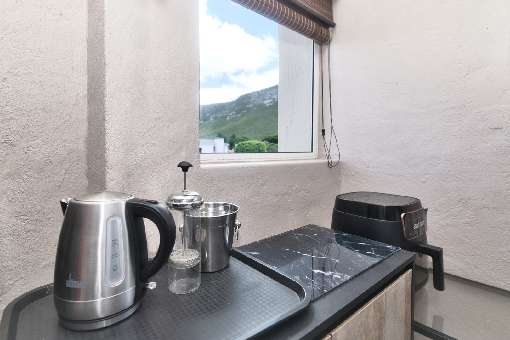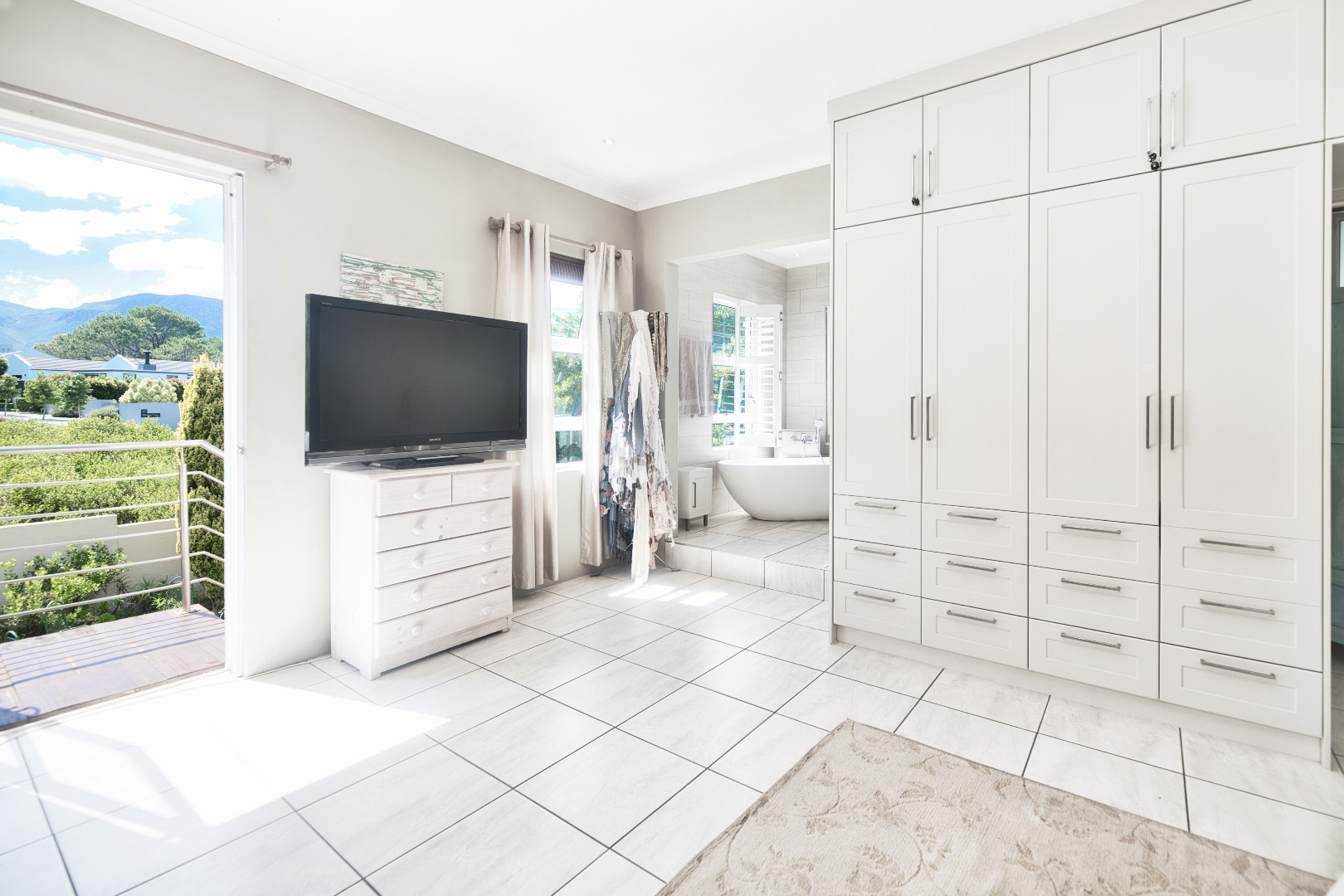 Upstairs hosts 3 bedrooms that are all en-suite with a full kitchen, lounge, dining room and a sunny, north facing balcony/patio. When I first saw the upstairs patio, it felt like a magnet pulling me out! That special spot is for morning coffee, wrapped up in your favourite fleece blanket and settling in to watch the sunrise or later on a summer's afternoon to take in some clean mountain air with a slight sea-breeze against your cheek and host friends for a glass of chilled rose. Its nice.