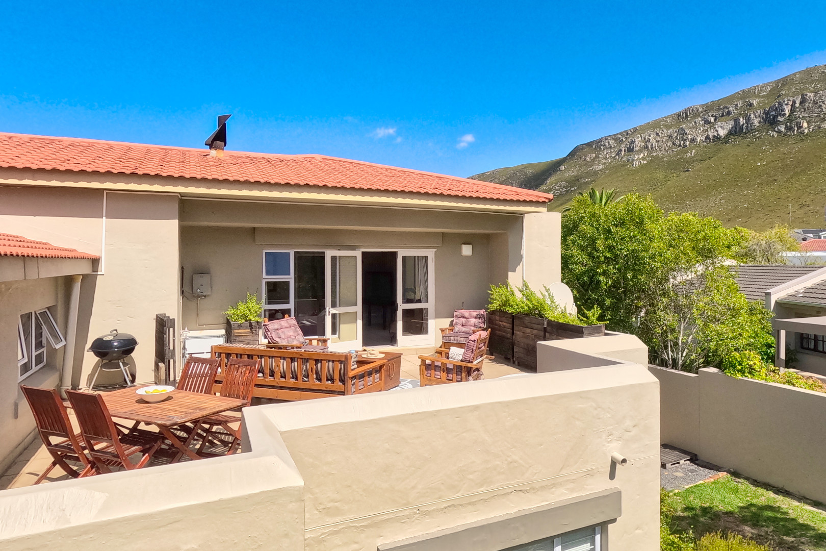 The erf itself is large as is the size of the house which can accommodate many friends and families when they phone you to come visit in December. Or, it can host one large family that likes a lot of space inside and outside a property. If granny and oupa are part of your family, the flatlet downstairs is ideal or for the young student that comes home once a month from Stellies or UCT (in this house he can bring his friends too).